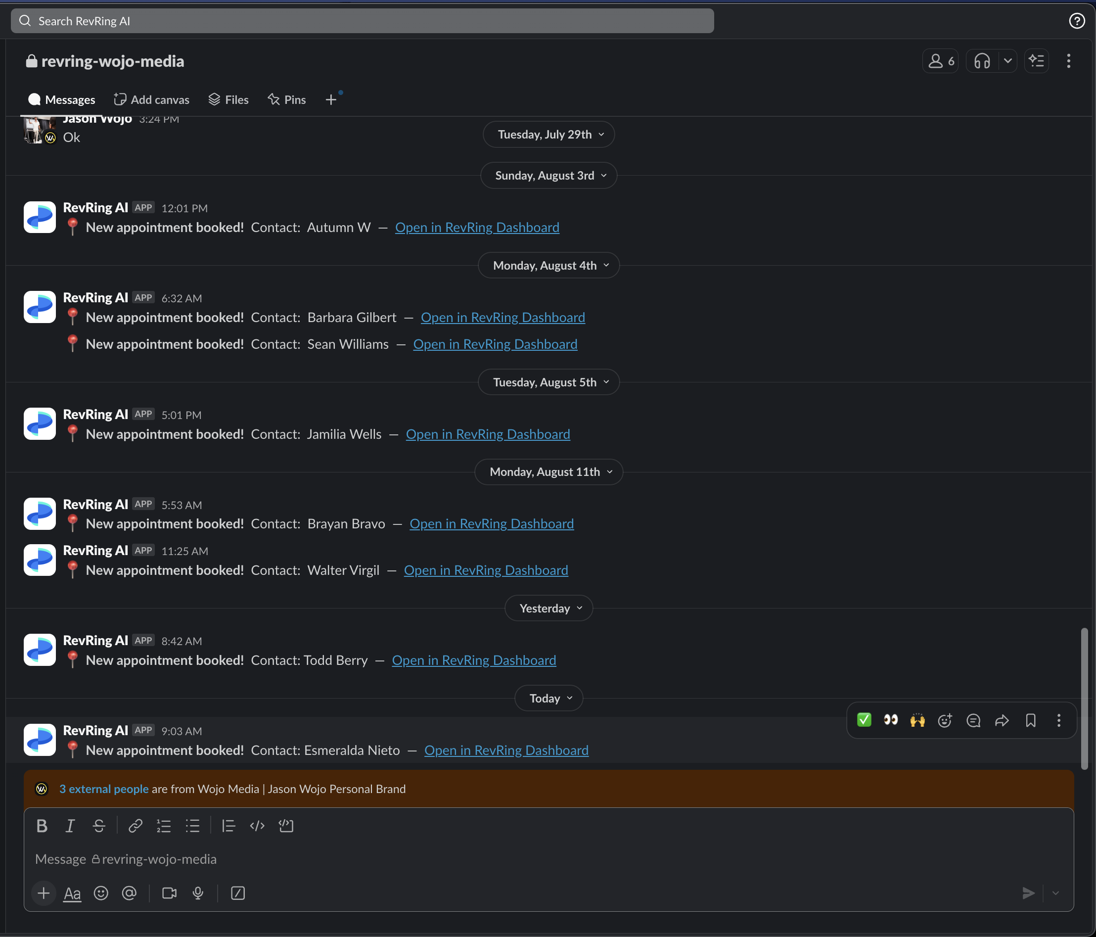Wojo Media — bookings flowing in, all confirmed