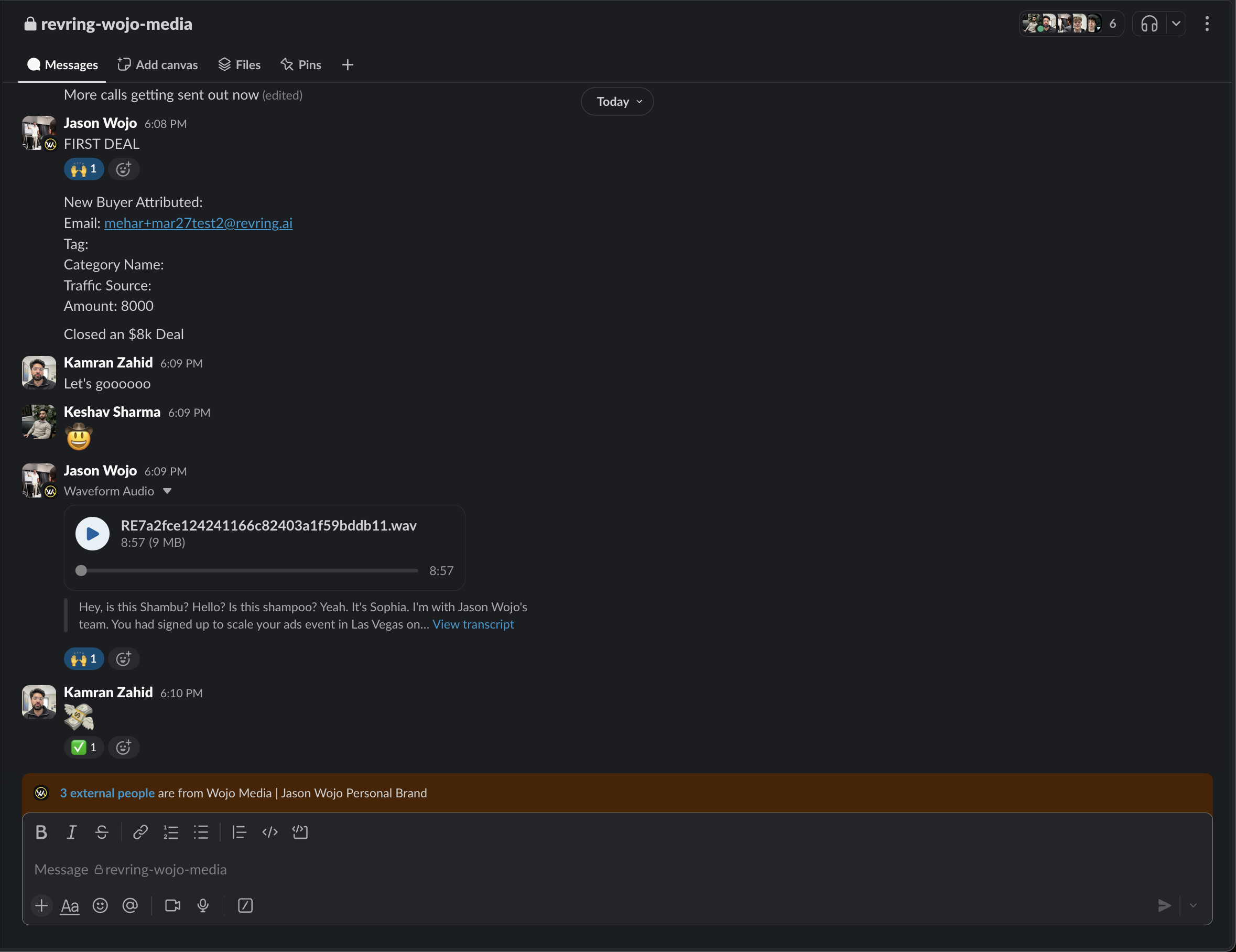 $8,000 deal confirmed — Wojo Media Slack reaction